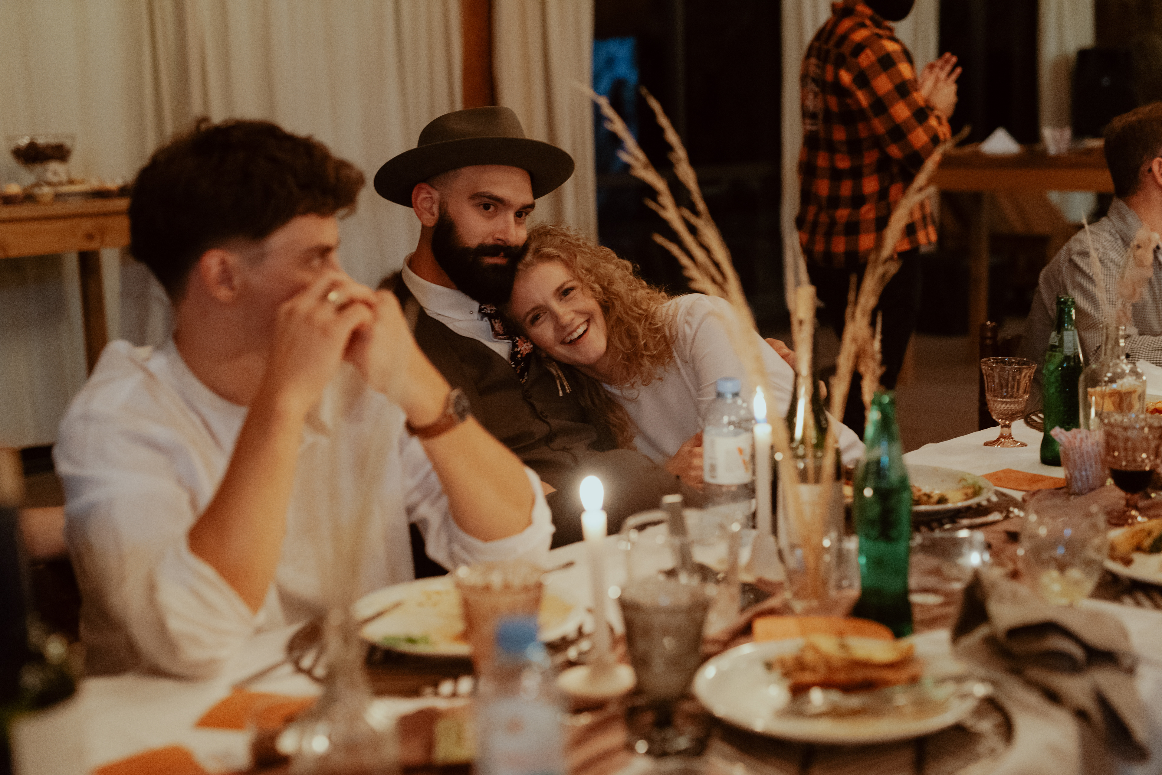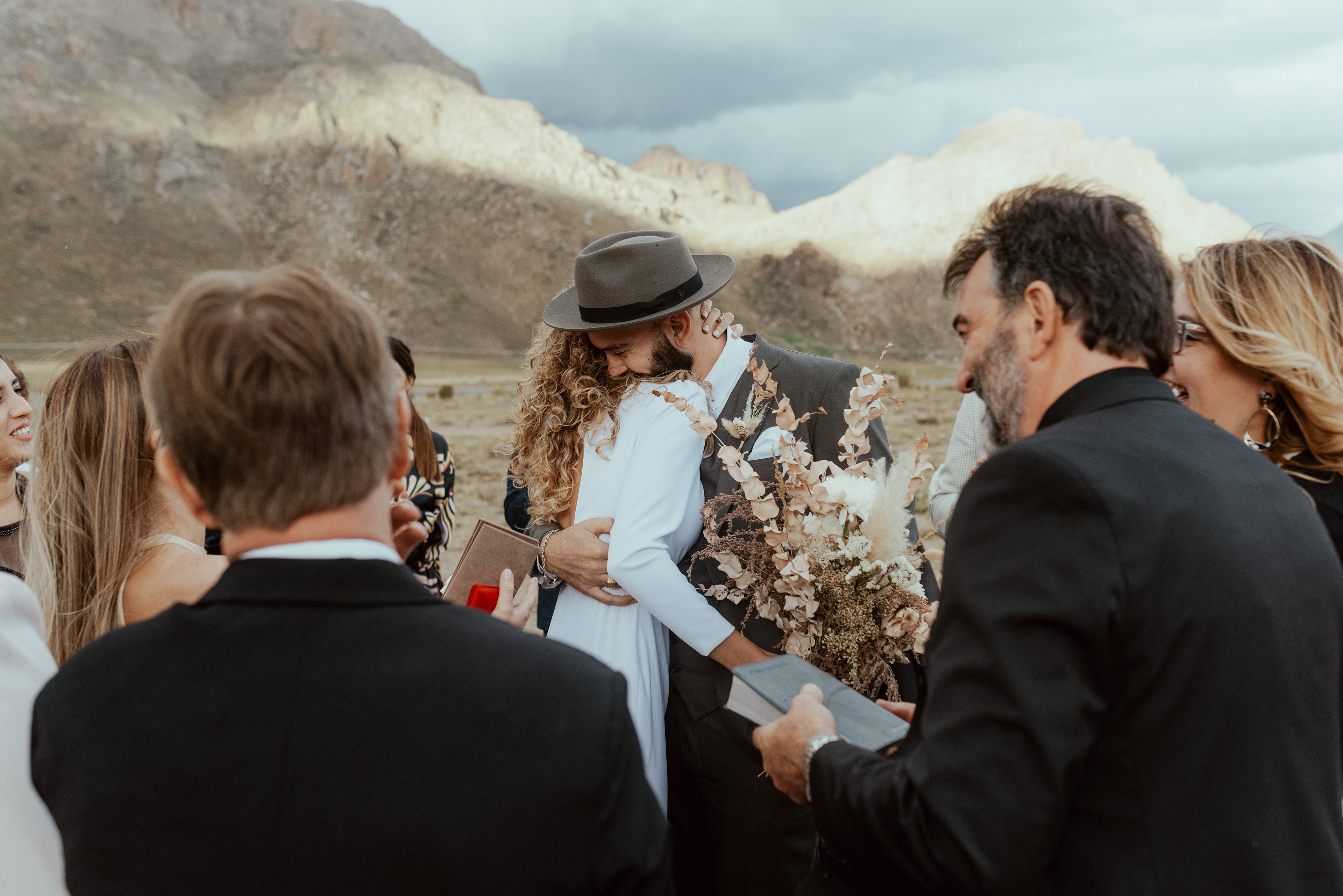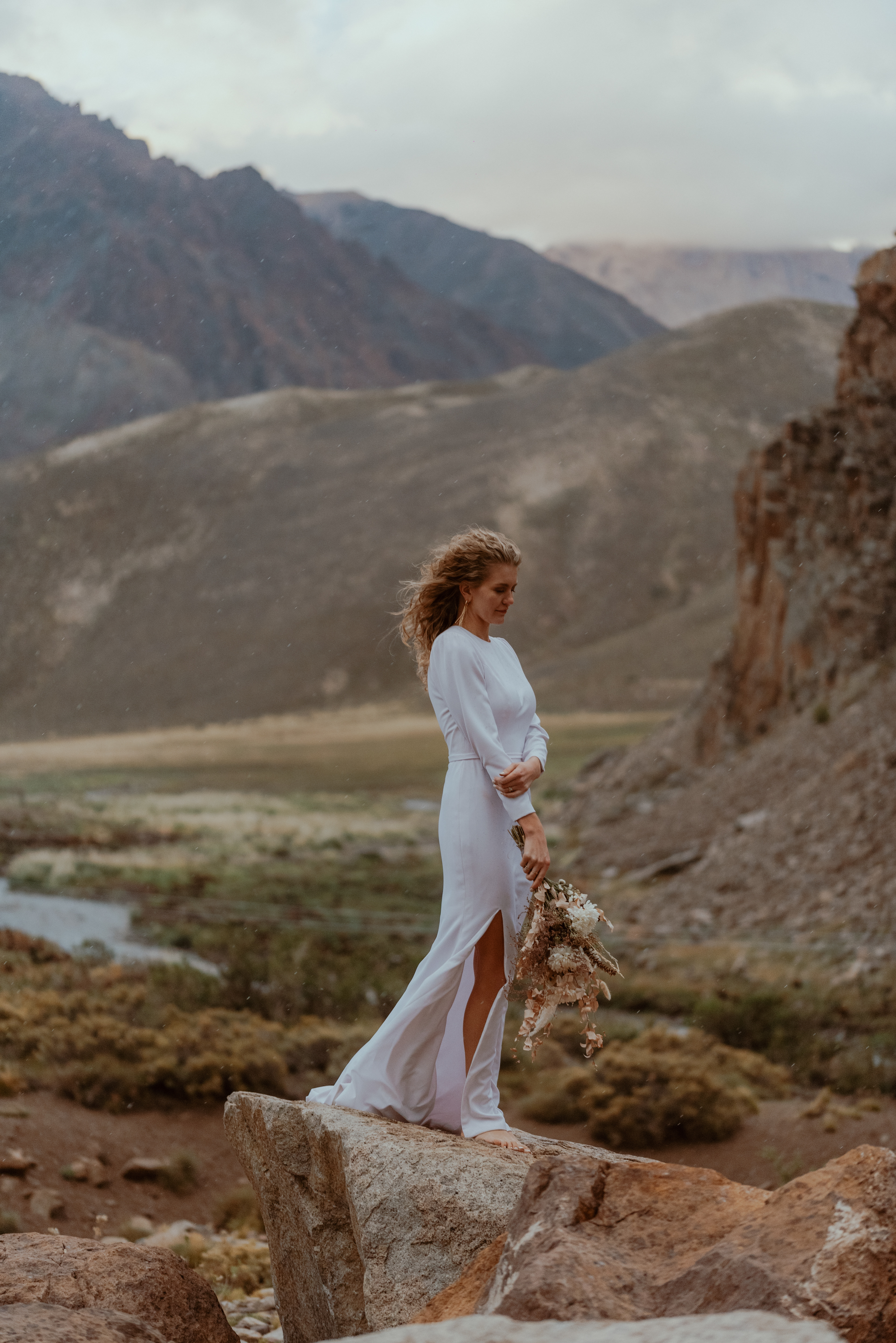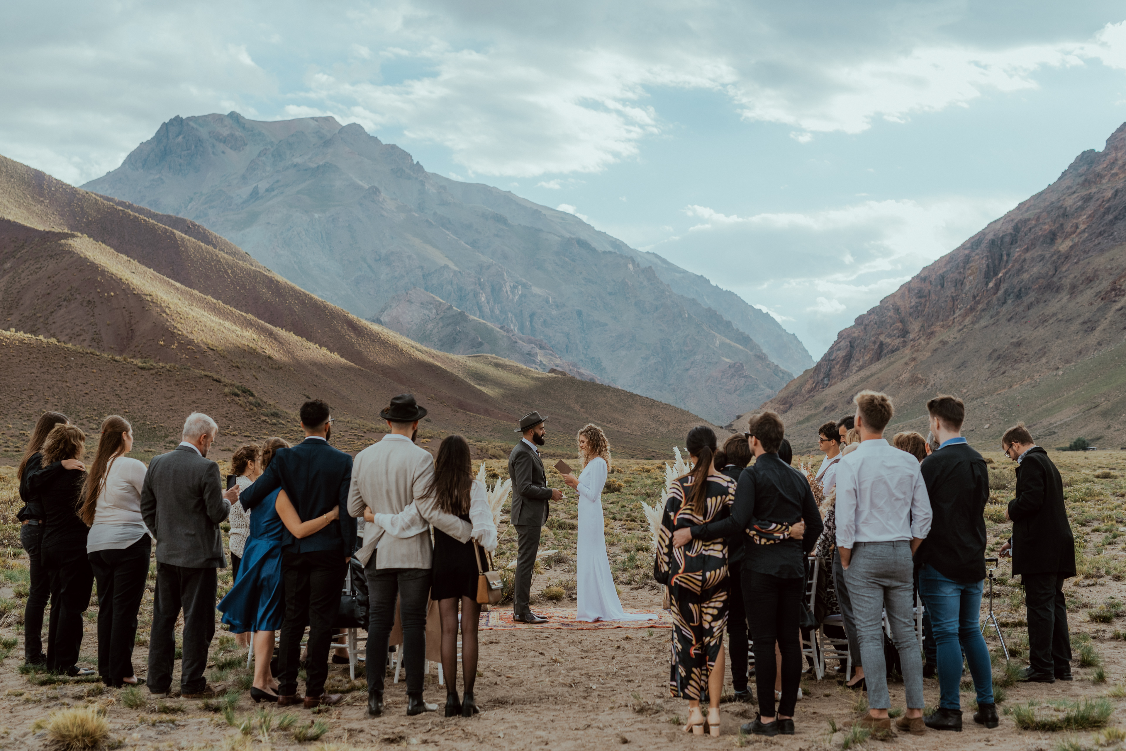 Cerca de ese lugar hay un pequeño pueblo turístico llamado Los Molles, donde celebramos durante la cena en un acogedor hotel de montaña, con fogón y ventanas gigantes. También contábamos con el interior del hotel para hacer la ceremonia si el clima se tornaba frío. Estábamos abiertos a los cambios de último momento; sabíamos que nos estábamos casando al pie de la Cordillera.
